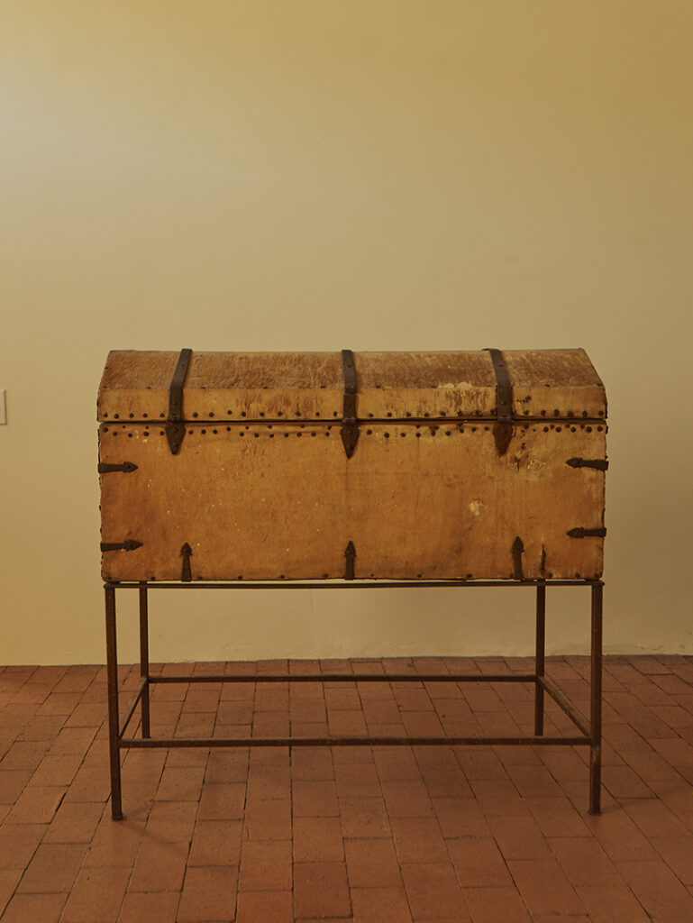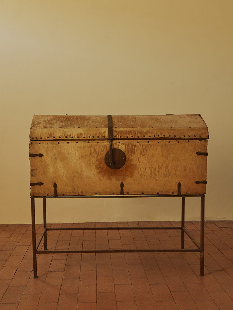ANTIQUE RAWHIDE TRUNK