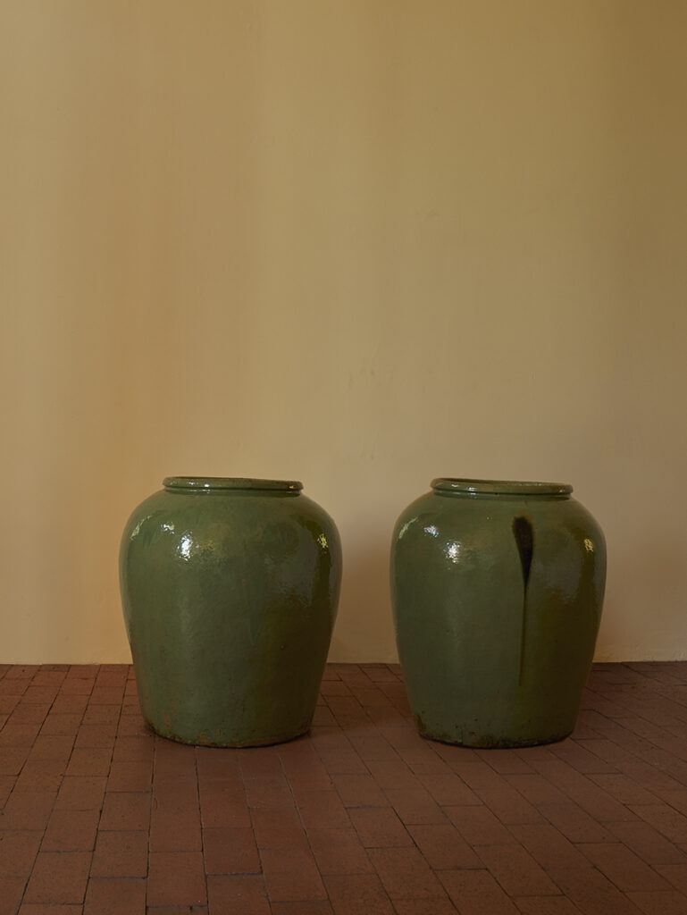 CELADON RAIN JARS Indonesia, Late 20th CenturyW 24” x H 28” x D 24”$6,000, Two Available, sold separately Inquire Tearsheet Back to Gallery