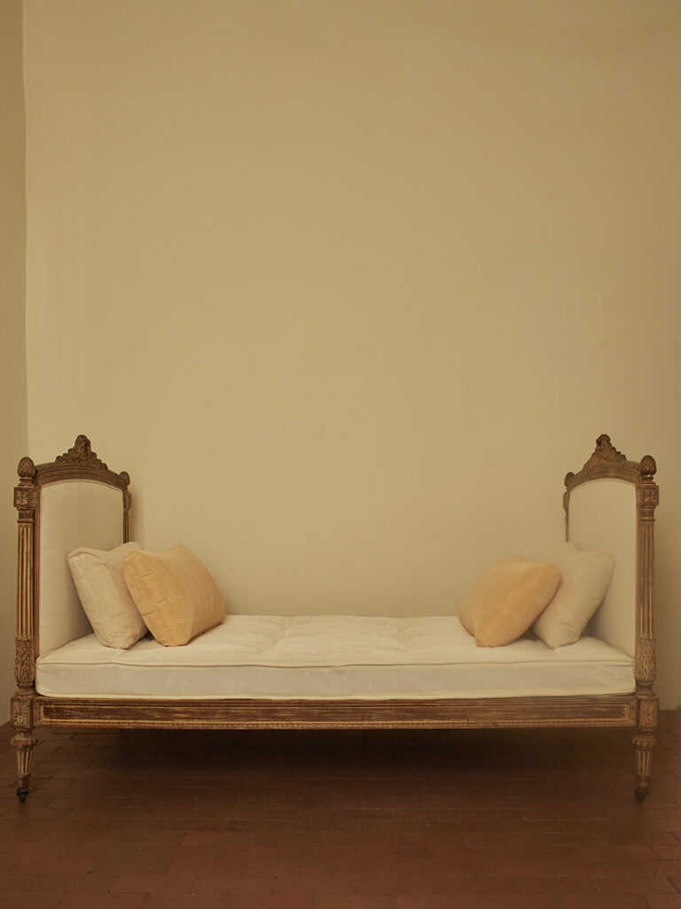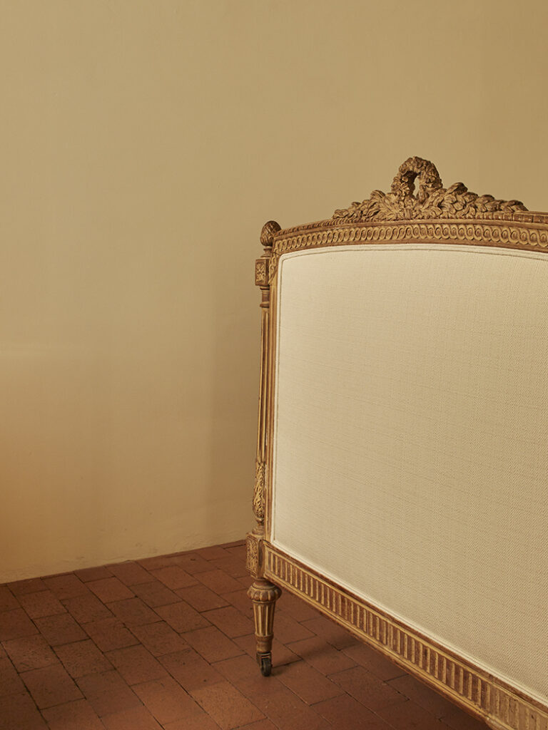 ANTIQUE PROVINCIAL DAYBED LOUIS XVI-INSPIRED Provence, France, Late 19th CenturyH 47” x L 79” x W 45”Seat Height: 18.5”$3,400 Inquire Tearsheet Back to Gallery