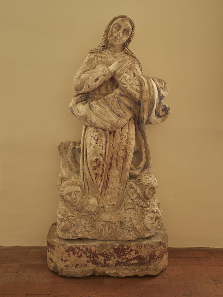 CANTERA STONE COLONIAL STATUE DEPICTING THE ASSUMPTION OF MARY