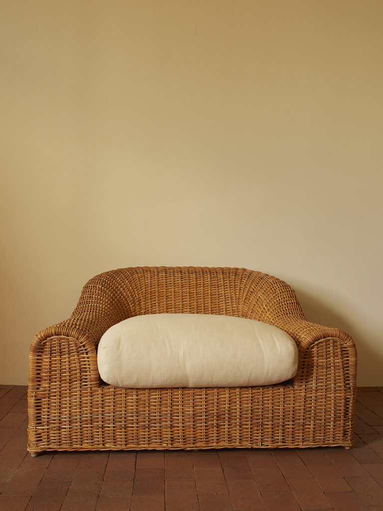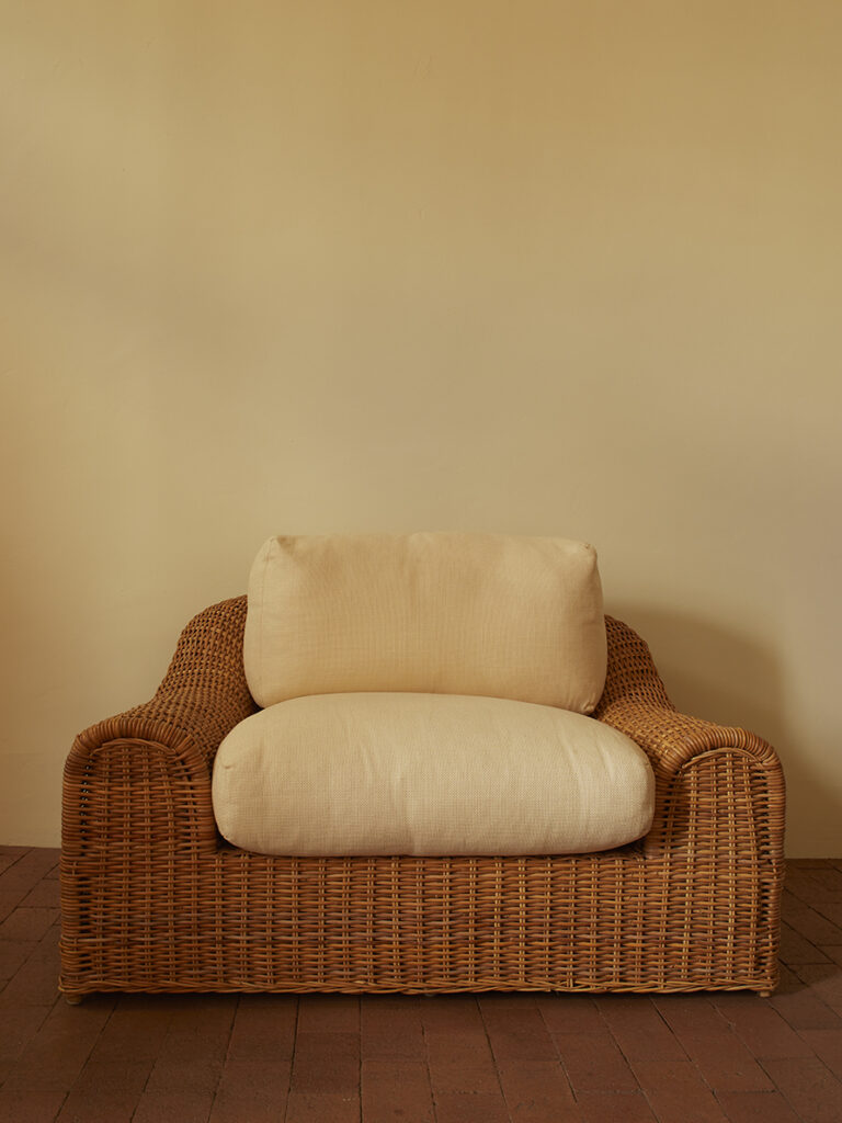 “JENNIFER” ARM CHAIR Michael TaylorUnited States, 1980’sW 48” x H 27” x D 42”Seat Height (with cushion): 20”$3,600 Inquire Tearsheet Back to Gallery