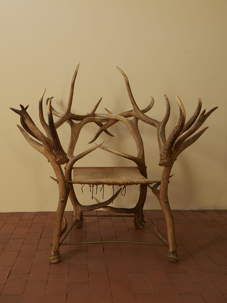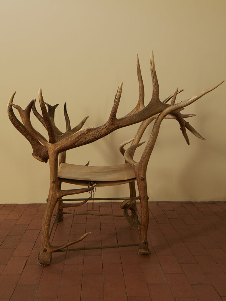 HANDCRAFTED ANTLER ARMCHAIR United States (Yosemite), C 1910’sH 48” x W 47” x D 53”Seat Height: 28”$9,500 Inquire Tearsheet Back to Gallery